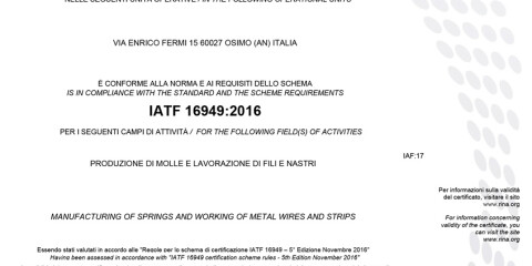 La certificazione è solo il punto di partenza per la garanzia di una qualità costante ed eccelsa monitorata internamente grazie alle moderne attrezzature di controllo. Siamo certificati ISO 9001 dal 1998, ISO TS 16949 dal 2005 e IATF 16949 dal 2017.